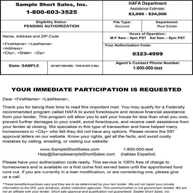 • Official Graphic Design (our complimentary service to all clients): Snap pack mailers are designed to look official and therefore they almost always get opened! The design of the snap pack message is one of urgency or time sensitivity.